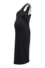 Vestido comprido maternity com um ombro descoberto e alças no outro. Tecido fluido elástico.