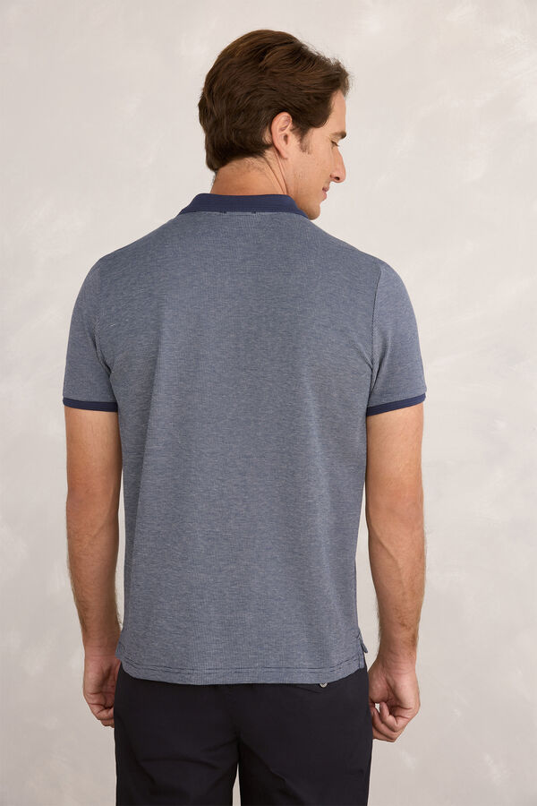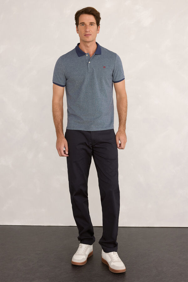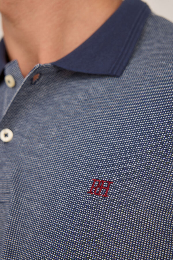 Polo manga corta confeccionado en 100% algodón sostenible con estructura bicolor tipo oxford y logo bordado en el pecho.