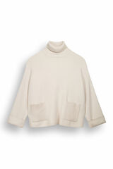 Jersey de punto de mujer con cuello alto y detalle de bolsillos delanteros.