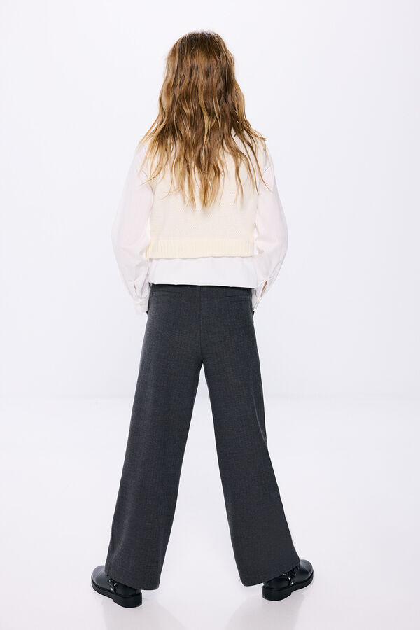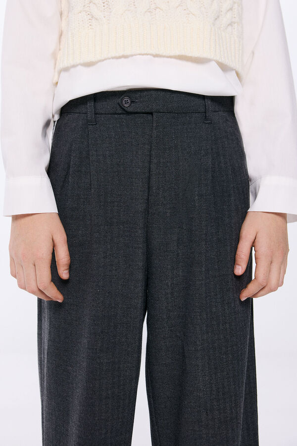 Pantalón en tejido tipo algodón con pinzas para niña con bolsillos. Fit loose & straight. Tiro medio. Cierre de boton.