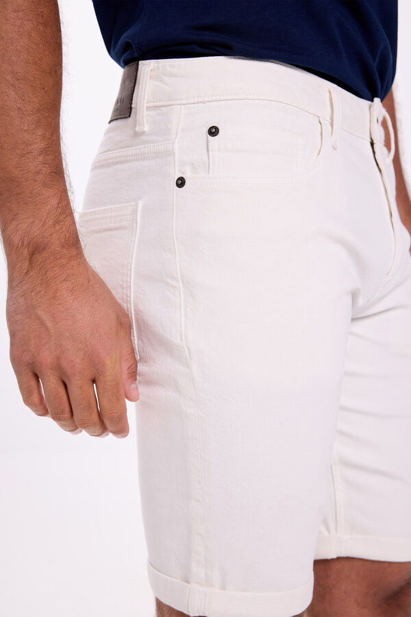 Bermuda 5 bolsillos lisa es varios colores y corte slim, confeccionada en algodón sostenible con estretch para mayor confort. Detalles personalizados de la marca.