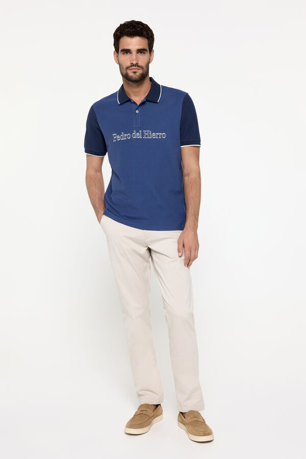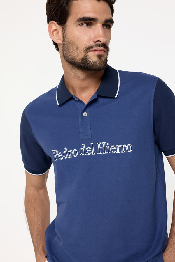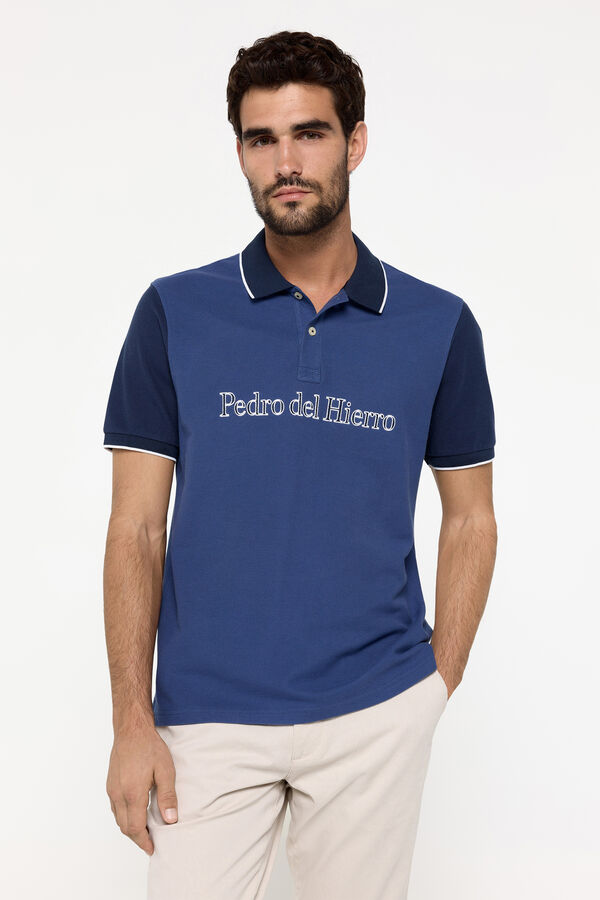 Polo pique fantasia confeccionado en algodón 100%. Maxi logo bordado en pecho y mangas y cuello a contraste