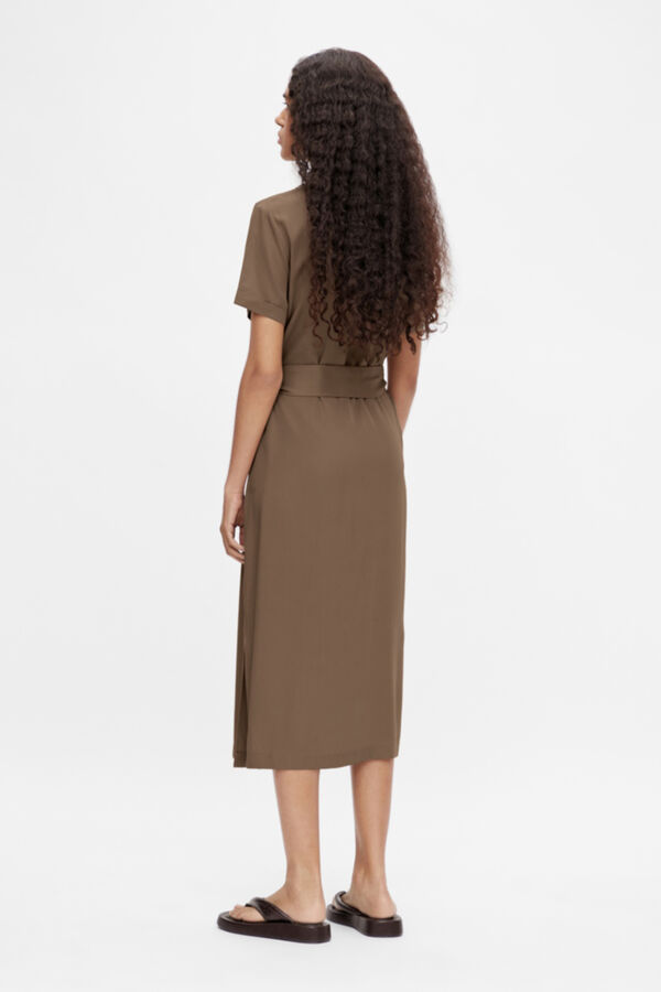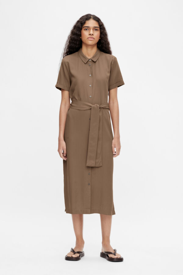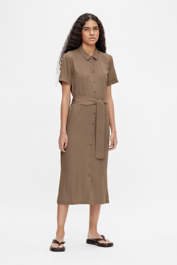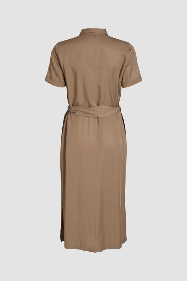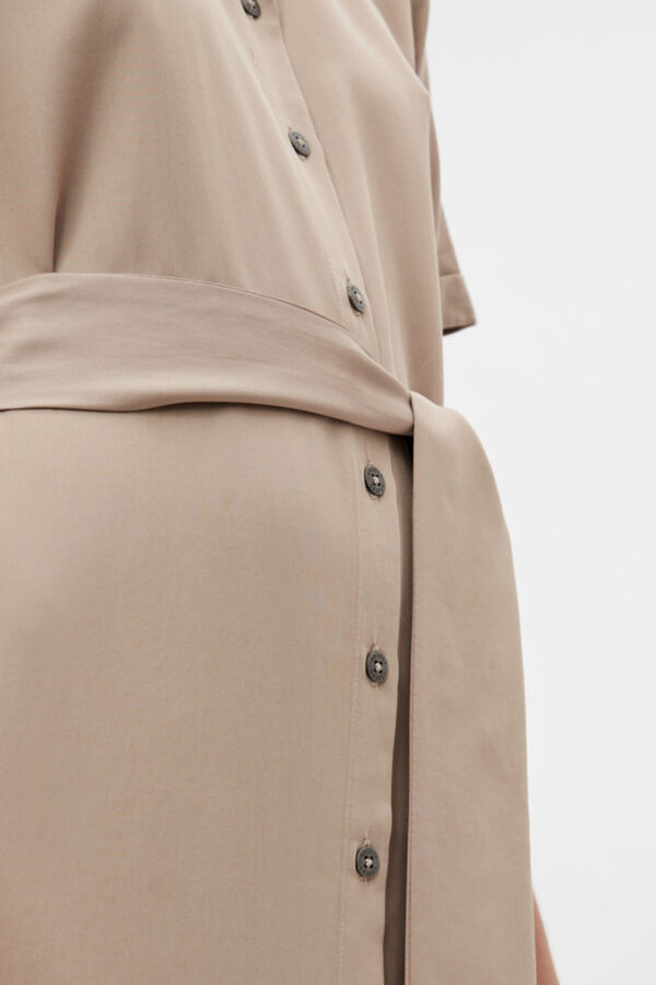 Vestido estilo camisero largo con manga corta. Con cierre de botones y cinturón. Confeccionado al 100% en TENCEL™ lyocell.
