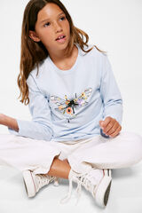 T-shirt de manga comprida em tecido de algodão para menina. Estampado gráfico com licença "Batman" à frente. Gola redonda. Fit reto.