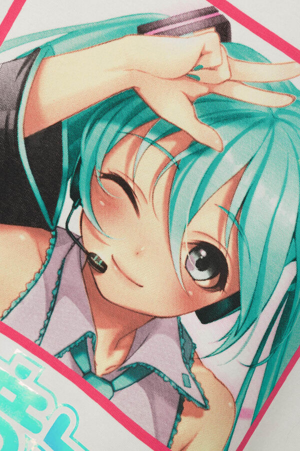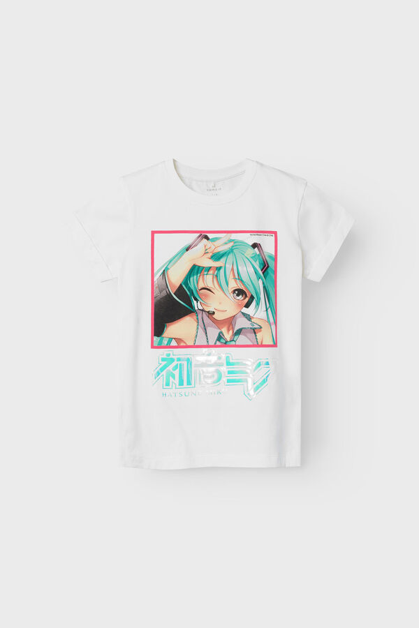 T-shirt de menina de manga curta, gola redonda e estampado frontal. Licença de Hatsune Miku.
