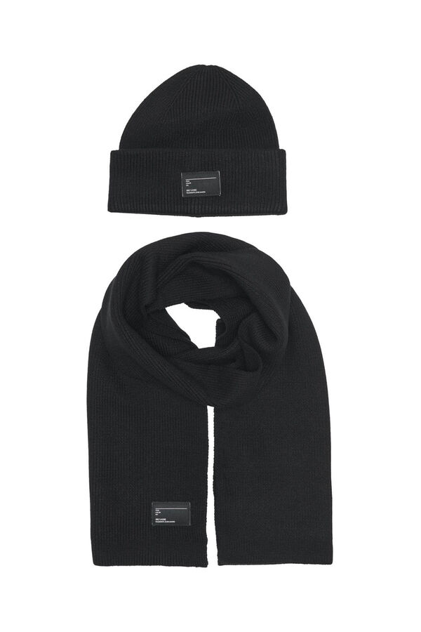Pacote de sobretudo e cachecol confeccionado em poliéster. Possui detalhe de etiqueta da marca bordada em ambas as peças.