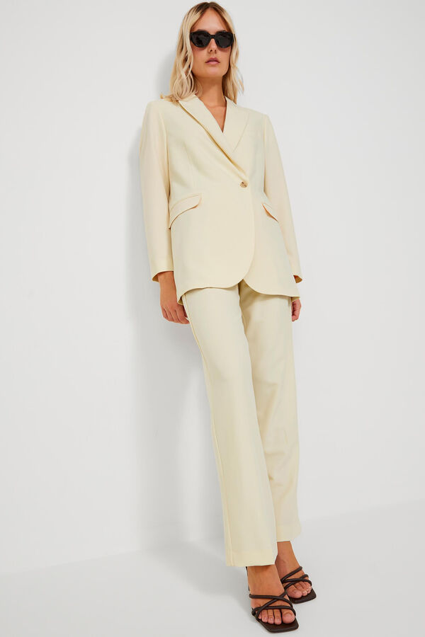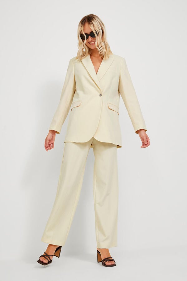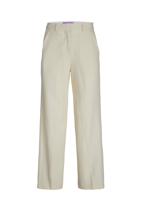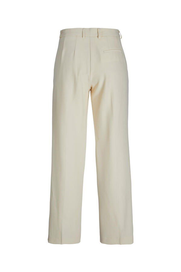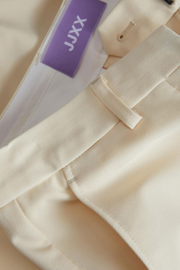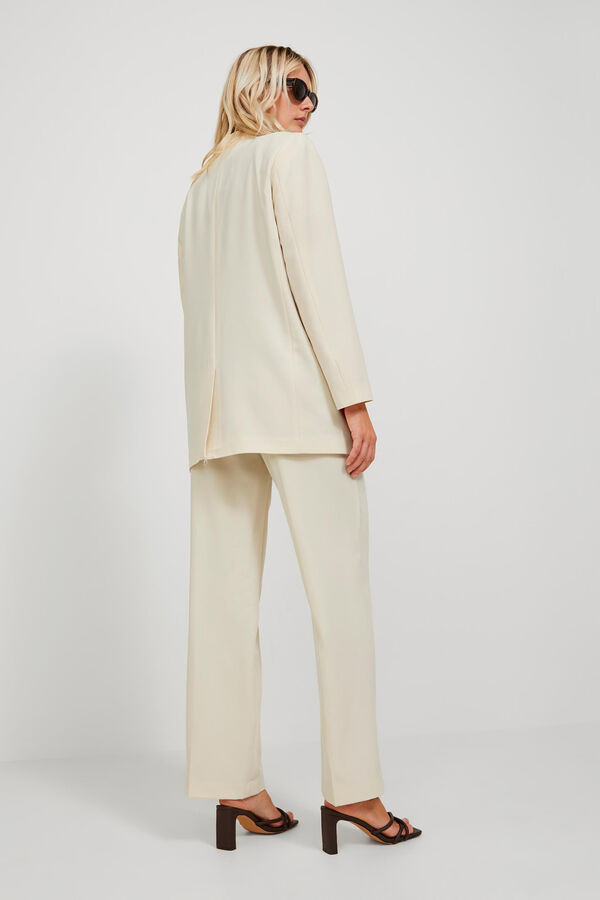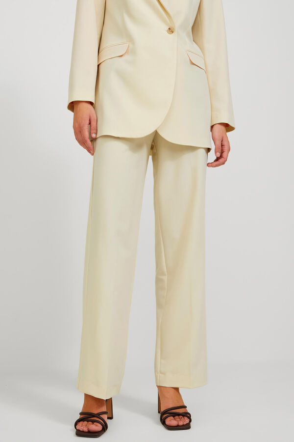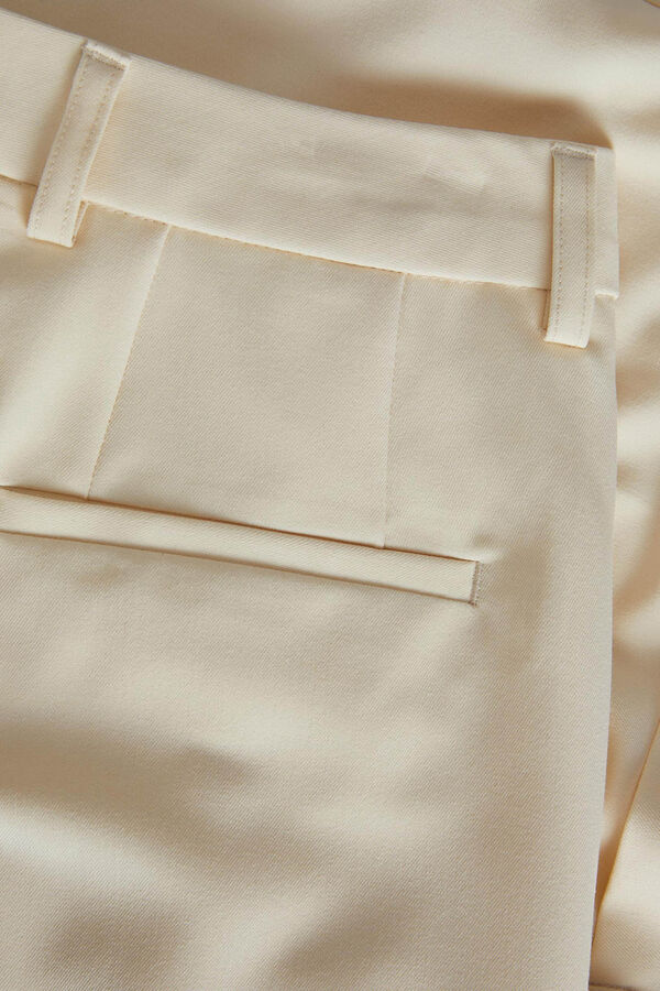 Calças clássicas. Corte alto. Um bolso posterior. Tecido básico com aspeto depurado e uniforme. Braguilha com fecho-éclair. Extensão completa. Corte regular fit. A modelo veste o tamanho 27 comprimento 34 e mede 178 cm. Este artigo está confecionado com poliéster reciclado