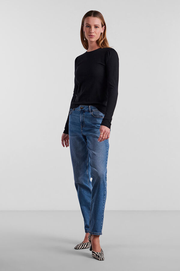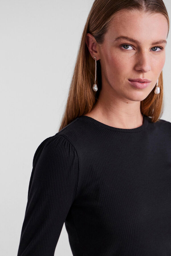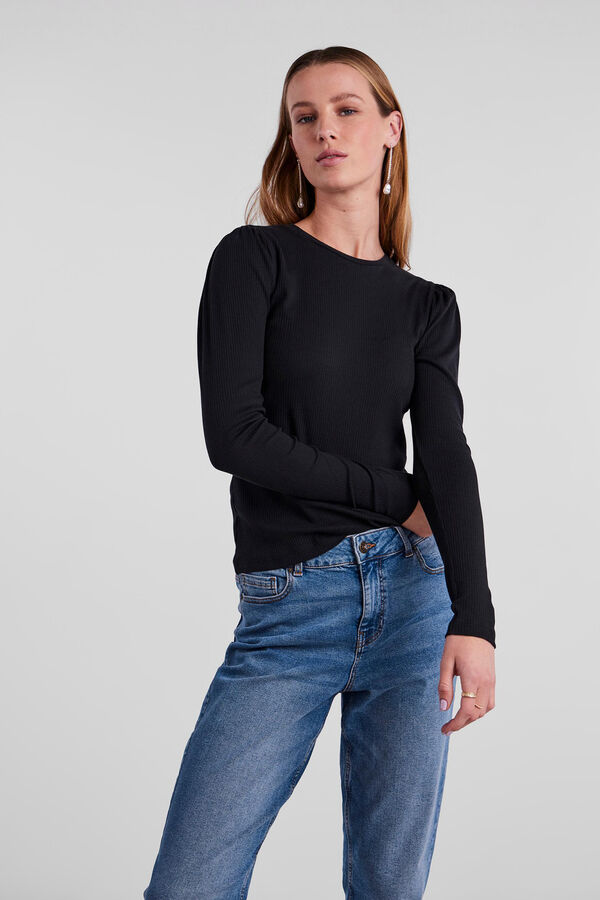 Top de algodão de gola fechada e manga comprida